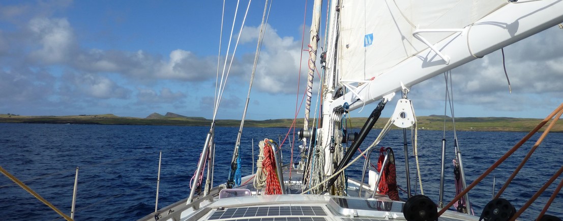 12 jours de navigation avec 5 heures de mise à la cape à 20 miles de l'île pour ne pas arriver à la nuit .