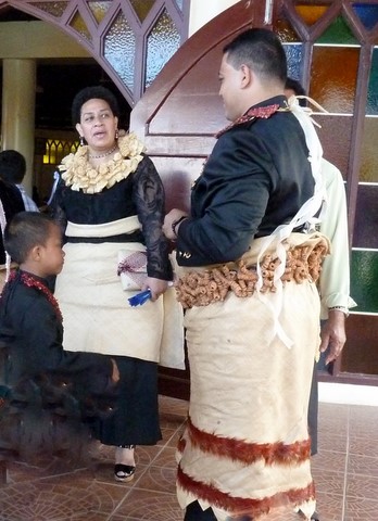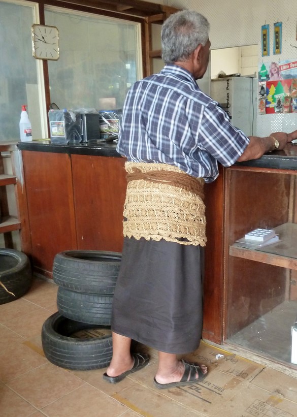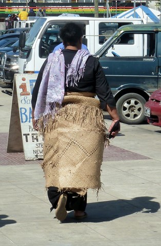 Le Ta'ovala est une natte enroulée autour de la taille retenue par 1 " Kafa " une corde faite en fibre de coco . C'est une tenue portée aussi bien par les hommes que par les femmes sur une jupe longue noire .