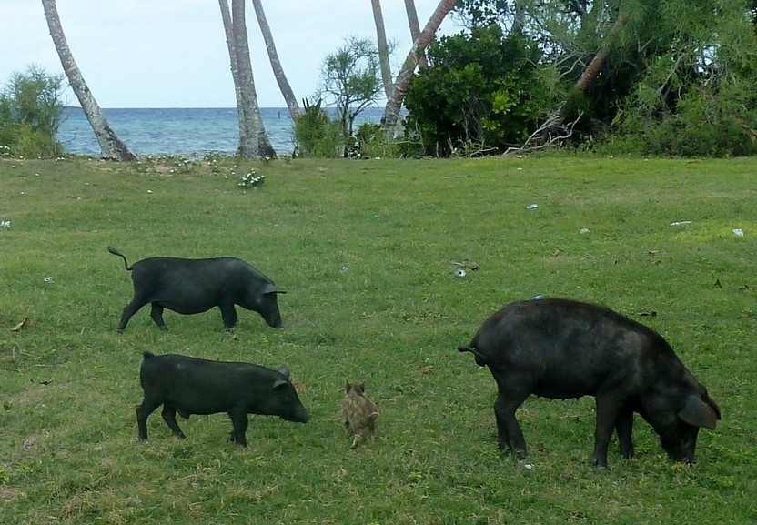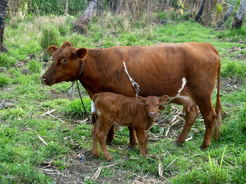 j'ai eu des problèmes avec mon appareil photo donc pas de veau en photo . Mais c'est très étonnant de voir ces vaches en liberté dans une île dans le pacifique loin d'une île habitée !