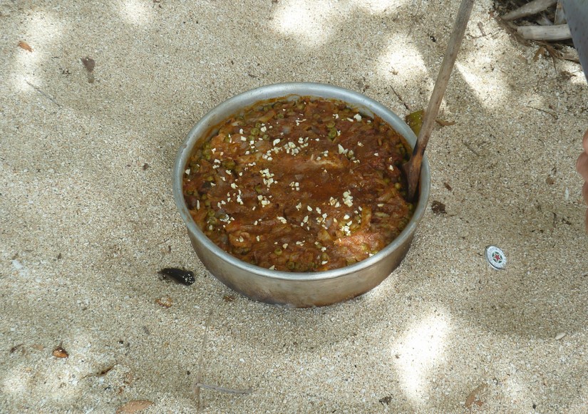 3 hommes grands et costauds en tenue traditionnelle , sont arrivés à bord de la petite annexe de Bernie . Je n'ai pas osé prendre des photos ... dommage c'était amusant ça débordait beaucoup !