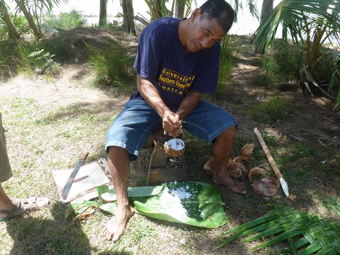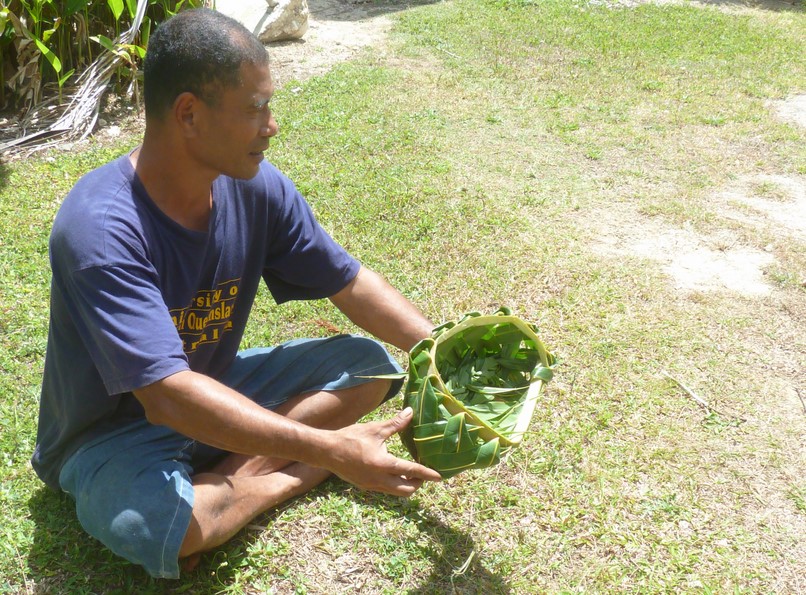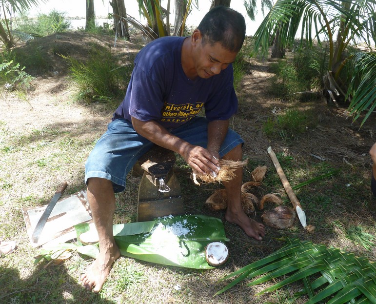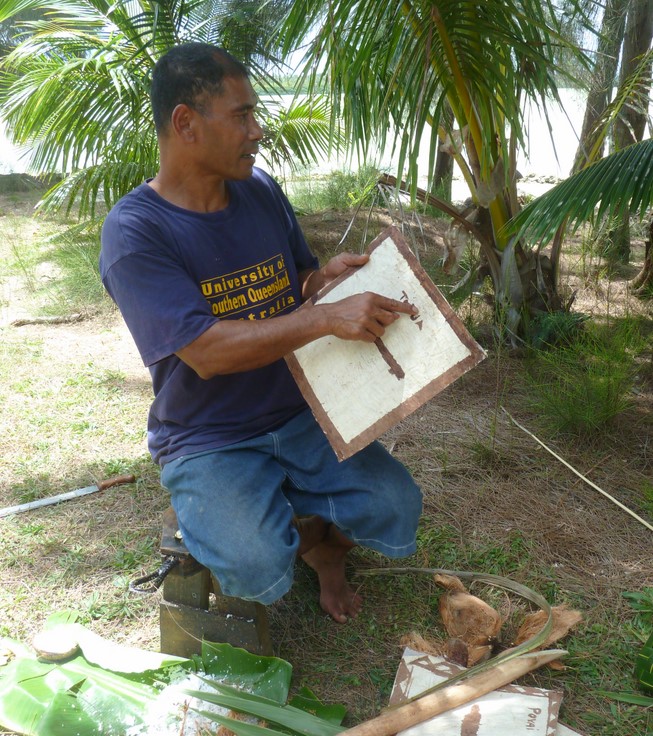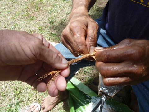 Il nous explique comment faire le kafa la ceinture qui tient en place le ta'ovala