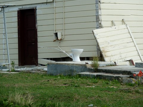 La maison a reculé laissant ses fondations , son escalier d'entrée et son WC !