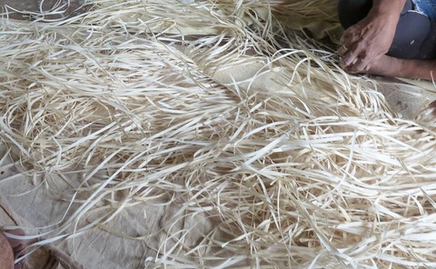 il faut couper les feuilles , les faire sécher au soleil , enlever le coté épineux , les faire bouillir , les faire sécher encore , les tailler en petites lanières puis enfin les tisser .