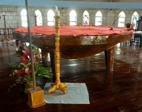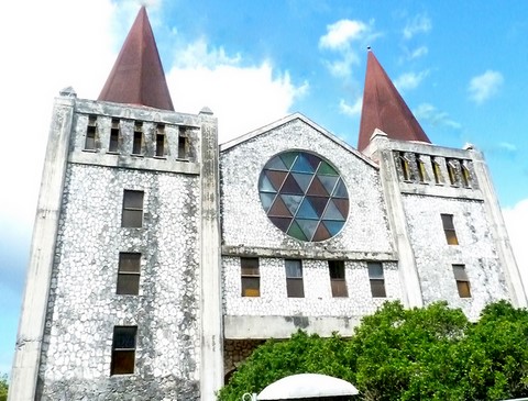 Il y a du avoir un missionnaire , venu d'Europe , passionné de châteaux forts . Il a donc fait construire une église à son goût et depuis comme c'est la concurrence pour attirer les fidèles , elles sont toutes dans le même style . Elles sont toutes plus kitch les unes que les autres .