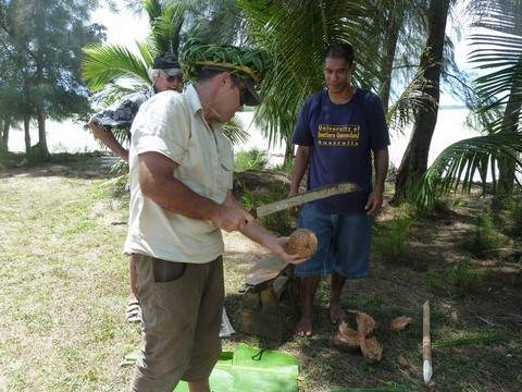Un monsieur nous montre en direct quelques coutumes des Tonga .