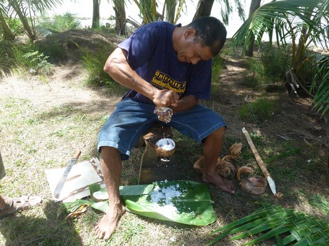 Pour faire du lait de coco : enlever la pulpe et avec la fibre la presser