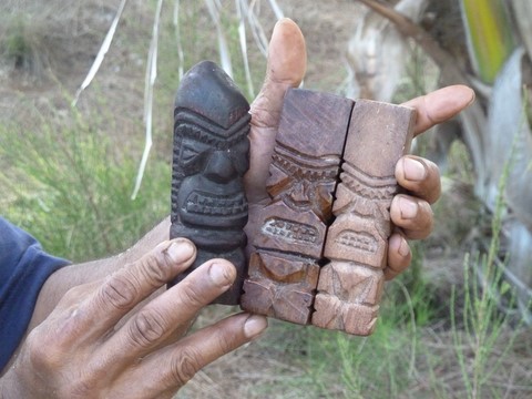 Les dieux tongiens ont l'air toujours en colère avec leur bouches ouvertes et les dents bien en évidence .