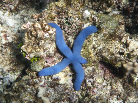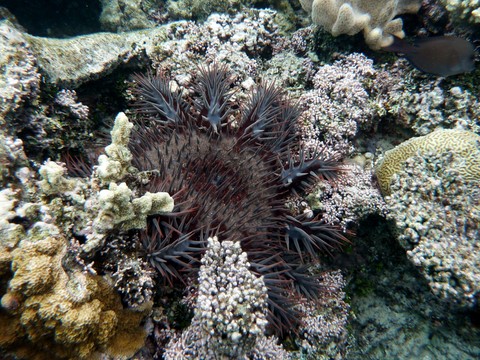 C'est celle qui fait des ravages sur la grande barrière de corail d'Australie : l'Ancanthaster épineuse . C'est encore à cause de l'homme qu'elle s'est multipliée de façon inquiétante par le ramassage des mollusques genre Triton qui sont ces prédateurs . Elle est épineuse et en plus elle secrète un venin qui provoque des vomissements et de violentes douleurs .