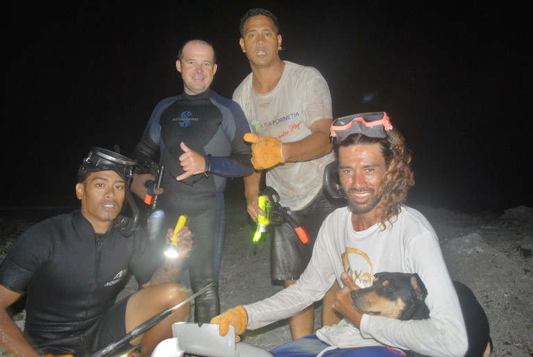 Les pécheurs en pirogue sont du coté d'Alofi là ou nous sommes installés sur corps morts .