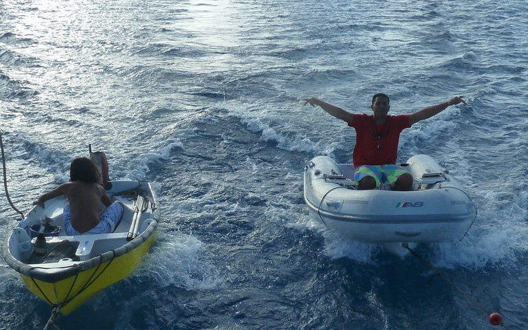 Balade en annexe à voile pour aller voir Hiro , au nord de l'île .