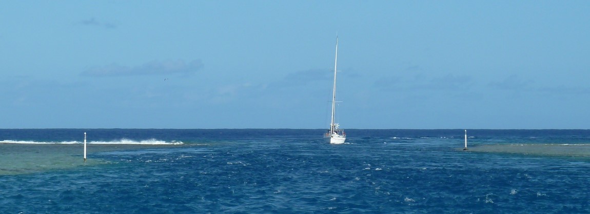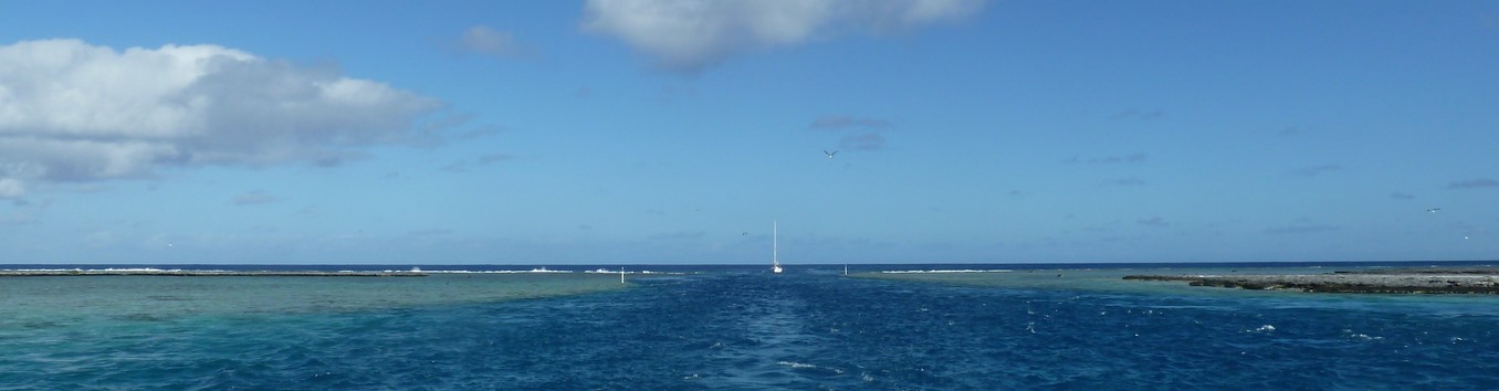 Mais pas de photo pendant le passage cette fameuse passe réputée dangereuse que beaucoup de bateaux évitent en partant de Bora Bora direct Mopelia car la concentration est au maxi . En plus un de nos passagers , Siméon , veut faire une prière !