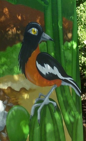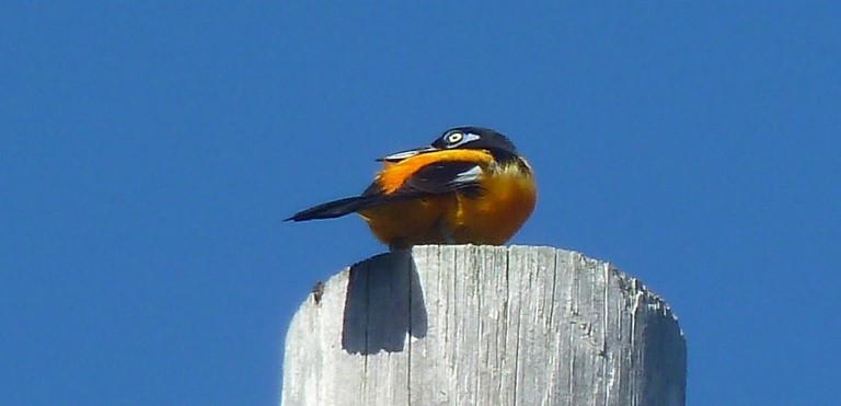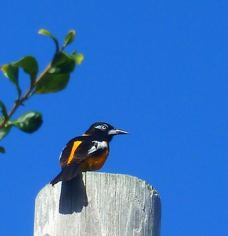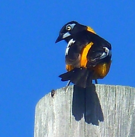 Marc a des yeux de lynx et mon appareil un bon zoom . C'est un oriole trupial , un oiseau endémique les ABC .