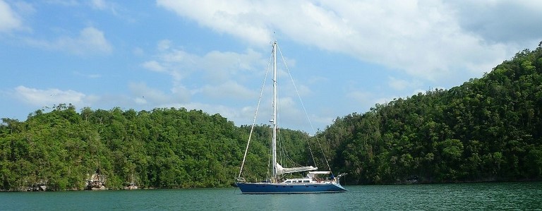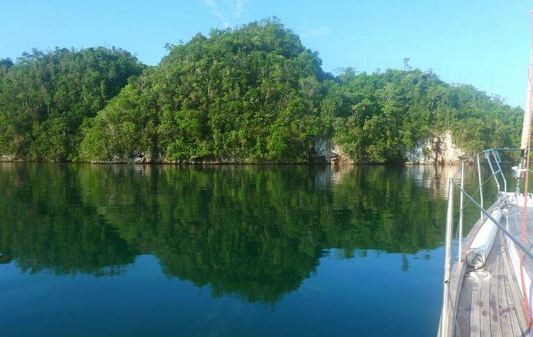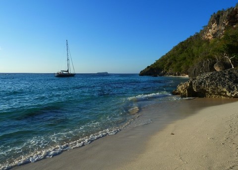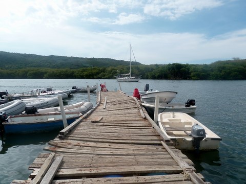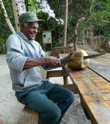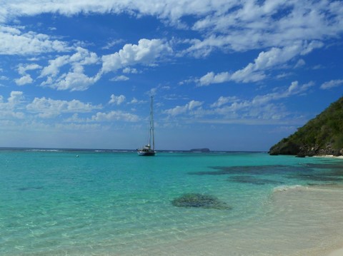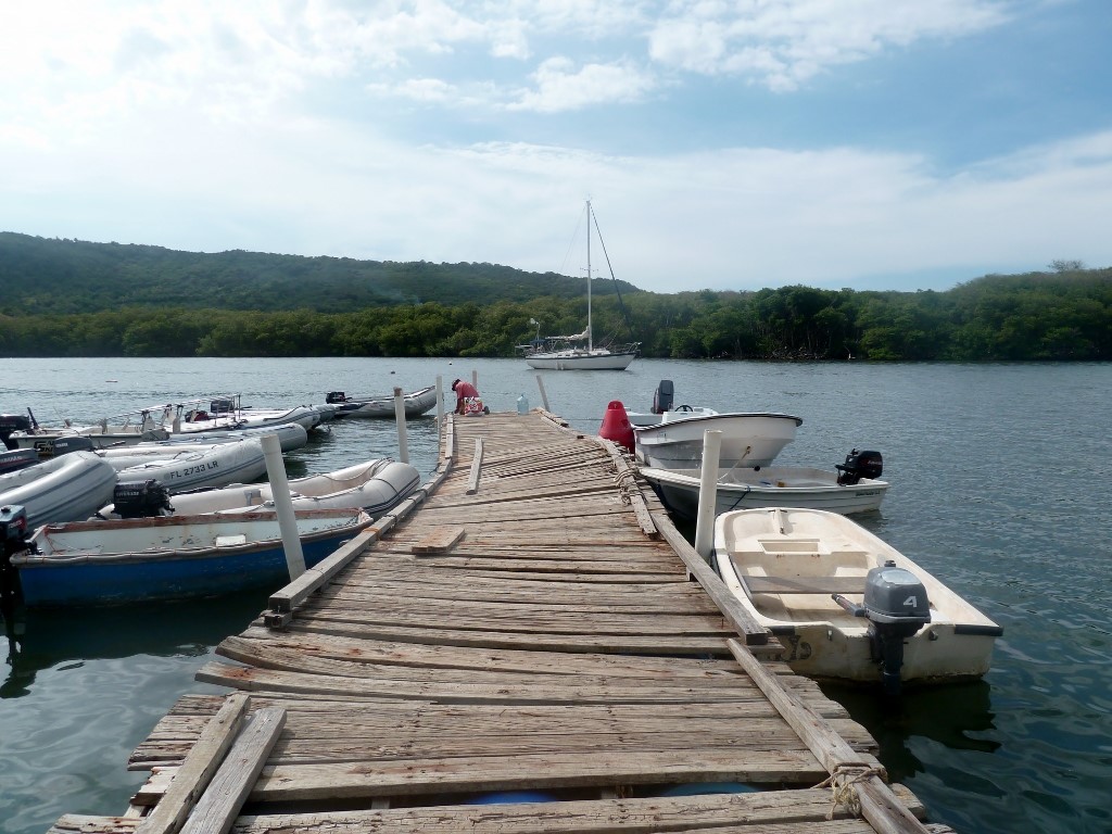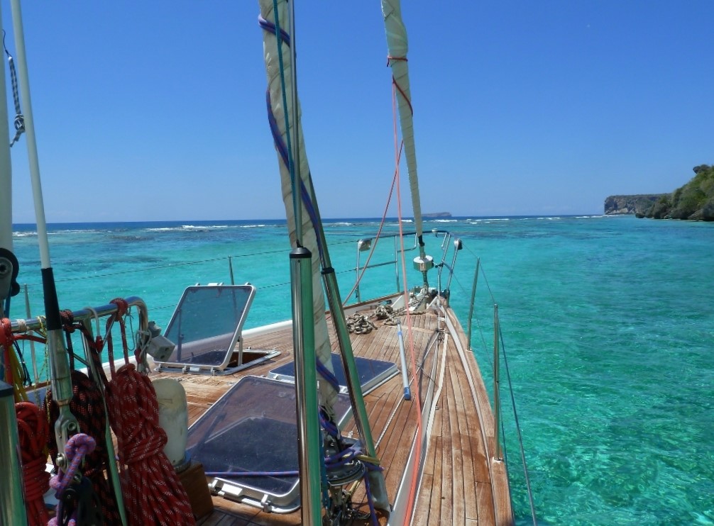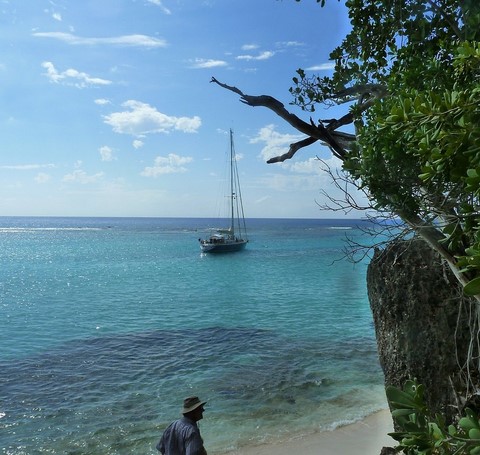 Nous sommes allés voir le propriétaire du voilier . Il était allongé sur le pont au soleil tranquillement ! C'est un anglais qui m'a l'air très tropicalisé . Il nous a dit qu'il était responsable mais je suis persuadée qu'il ne dépassera pas le stade de la parole !