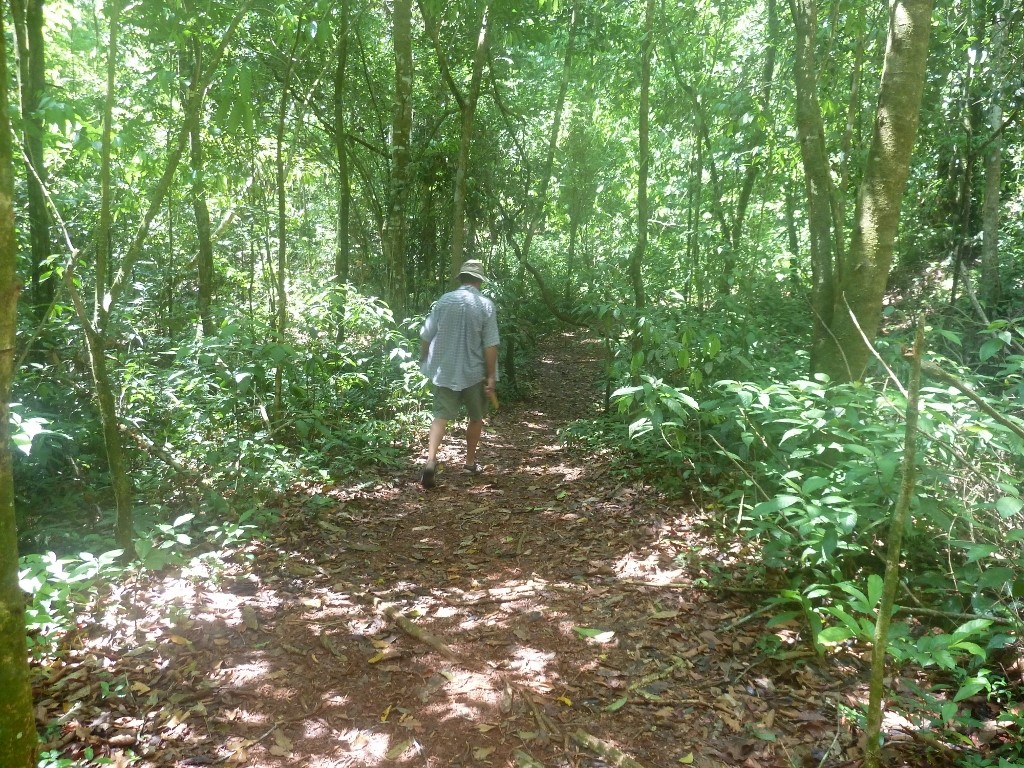 Nous nous enfonçons dans les bois pour le prendre en photo . Mais il se sauve assez rapidement malgré son grand gabarit ( environ 1,30 M )!