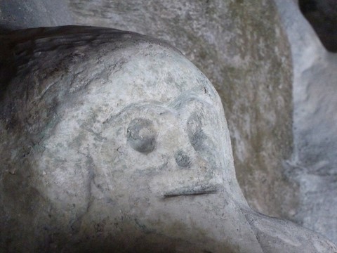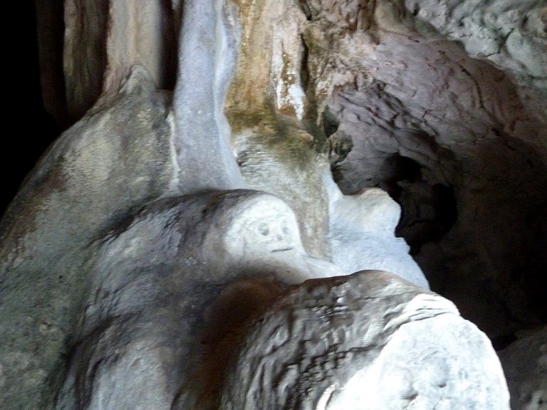 Ces têtes étaient à l'entrée des grottes pour protéger les habitants . Sans notre guide nous ne l'aurions jamais vu .