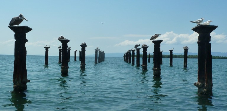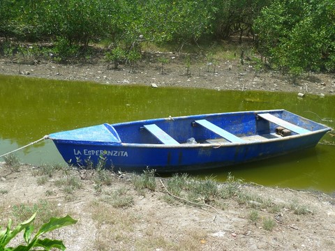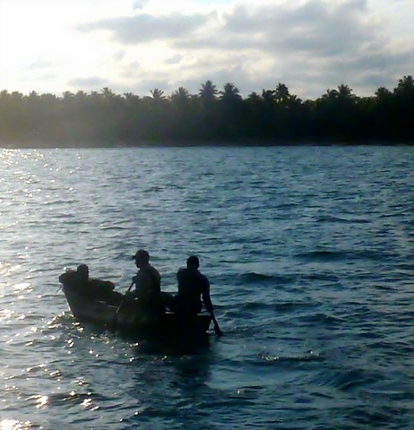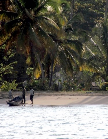 était tout prés du bateau . 2 d'entre eux ramaient avec des pagaies en bois ( l'un des deux avait un fusil dans le dos quand même ) et le 3° me criait " EL DEPACHO " d'abord j'ai cru qu'ils voulaient prendre le déjeuner à bord , c'était l'heure !