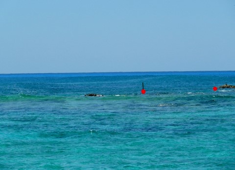 Marc a du passer entre deux cayes distantes de 10 mètres environ avec une grande houle puissante . Sachant qu'Australe fait 5 mètres de maître-bau ( la largeur du bateau ) , une vague mal négociée c'était la catastrophe . Bravo quel sang froid ! Heureusement l'alignement annoncé était présent .