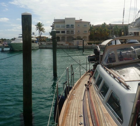 Après une séance de lasso autour des piquets d'amarrage pénible , je déteste cet amarrage à l'américaine . Les américains ont tous un cow boy qui sommeille eux . Attraper les vaches au lasso ne fait pas parti de mon patrimoine culturel même quand elles ne bougent pas . Donc je suis nulle et en plus pas équipée d'engins adaptés et du coté de la barre cela grince pas mal ! aie il va falloir recommencer pour la sortie et en plus autour de ces horribles piquets nous avons mis des boucles au lieu de passer les bouts en double , histoire de compliquer un peu l'affaire !!!