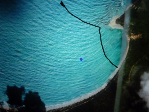 Le rond bleu c'est notre mouillage et la zone marquée de noire , celle à éviter .