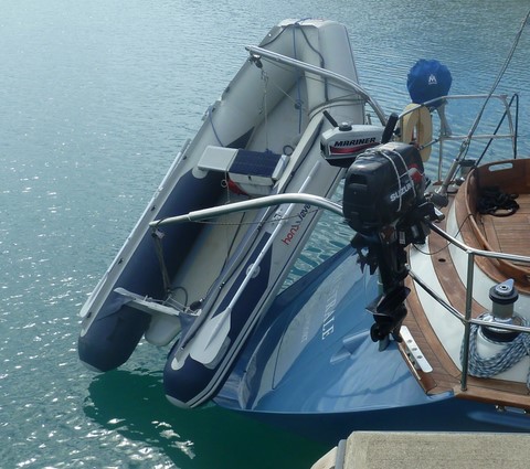 Un incident désagréable nous bloque dans ce port alors que nous avions décidé de partir aujourd'hui . Un voilier remorqué par un stupide , et totalement incompétent pilote sur un bateau moteur ( il allait beaucoup trop vite , lui même a manqué de nous rentrer dedans ! ) nous a tordu un de nos bossoirs (pièce en inox qui permet de tenir l'annexe en l'air ) . Personne n'est venu s'excuser en plus ! Heureusement qu'il n'a pas défoncé le tableau arrière du bateau !!!