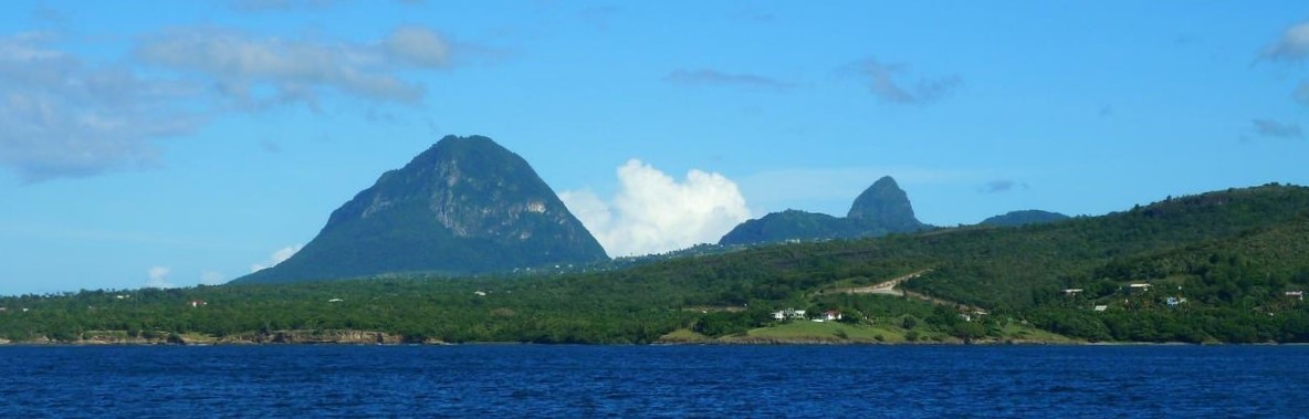 C'est un village fondé par les Français en 1740 . Et les 2 pitons sont des volcans jumeaux sortis de la mer après une fluctuation tectonique très ancienne . Devant il y a " petit piton" ( 738 M )et derrière dans les nuages " Grand Piton "( 798 M )