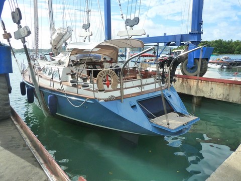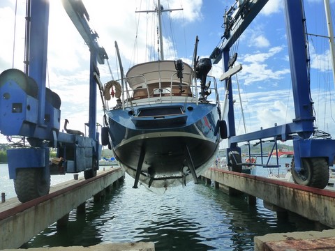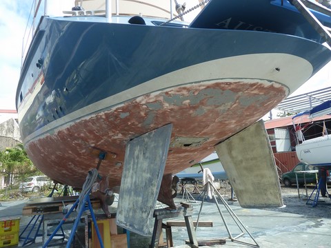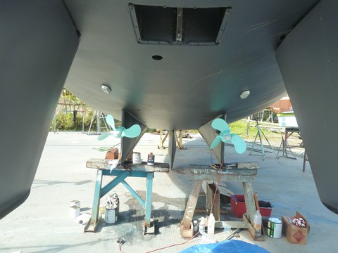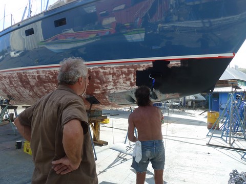 Philippe peint le puits de quille et la quille . Demain nous sommes à l'eau .YOUPI !