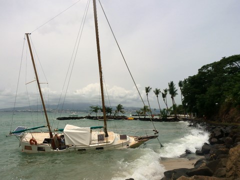 Ce cyclone est passé loin de la Martinique mais il y a eu une forte houle .Et le bateau a du se décrocher de son mouillage . Dommage