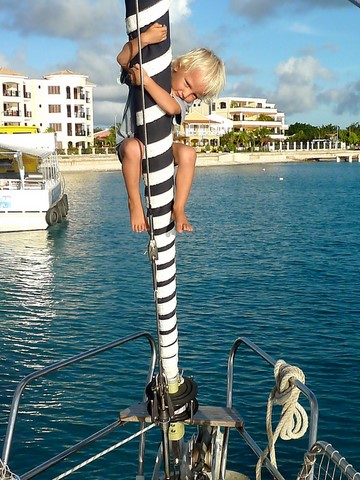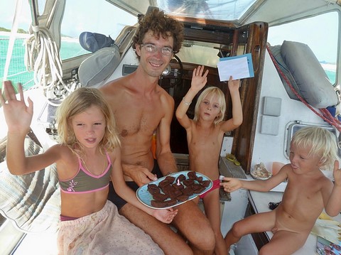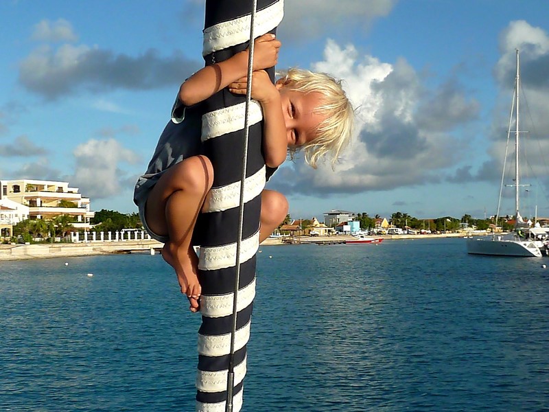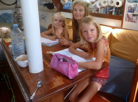 Une adorable petite fille . Elle a une grande soeur Paula et un petit frère , Gabriel . Ils forment tous les 3 avec leurs parents , Marion et Jean Laurent , une très belle famille de marins . Cela fait un an qu'ils naviguent . Ils sont partis de Cannes et doivent rentrer en septembre de l'année prochaine en passant par le Groenland et la Norvège ....j'ai froid rien que d'y penser .... ils sont courageux .
