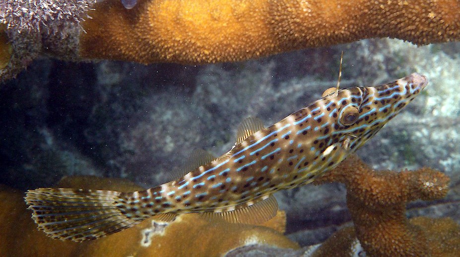 Et en plus ce sont des juvéniles : le poisson tacheté est une demoiselle à queue jaune de 2 cm environ et le gros poisson est une gorette jaune de 7 cm environ .
