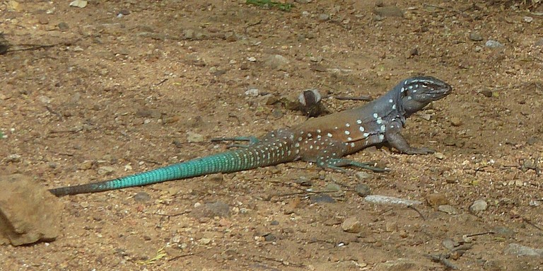 J'ai vu des lézards à pois marrons , des lézards à pois gris , des lézards avec les extrémités turquoises . Celui la est un mélange de tout ceux-la par tranche !