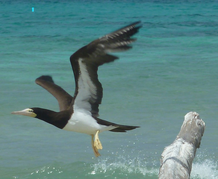 Voici notre île qui est en fait une écloserie pour fous bruns . Nous écourtons notre visite pour ne pas les déranger .