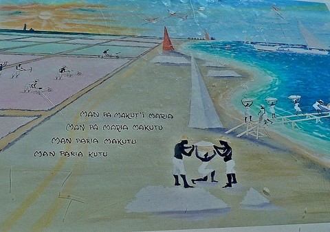 Les cases d'esclaves sont à coté , car des esclaves faisaient le transport du sel sur les chaloupes qui l'amenaient ensuite dans les bateaux . Ces cases , à peine plus grandes que qu'une grande niche à chien , leur servaient de logement la semaine . Et le dimanche ils parcouraient 36 Kms à pied pour retrouver leur famille .