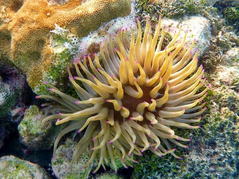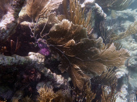 Des gorgones aux teintes voilettes se balancent doucement au grès des vagues . C'est un magnifique spectacle .