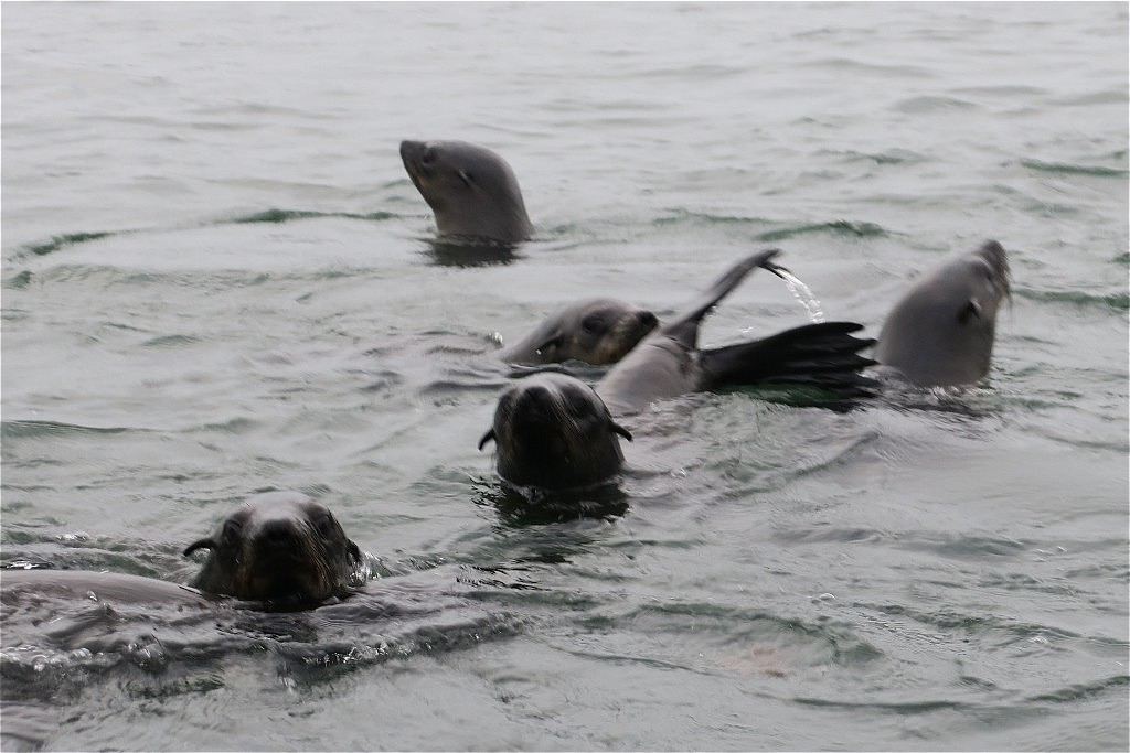 Nous repartons en annexe avec un comité d'adieu ... de jeunes otaries Nous avons l'impression qu'elles nous suivent