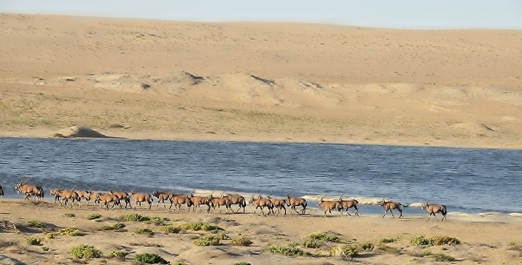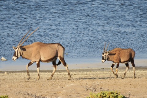 Un oryx C'est l'emblème de la Namibie mais il y en a aussi en Afrique du Sud c'est la seule gazelle qui peut tuer un lion ou un guépard grâce à ses longues cornes Mais la plus part du temps elles choisissent la fuite en bondissant