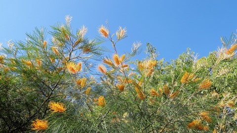 Un banksia attire des oiseaux ... On a l'impression d'être dans une voilière .