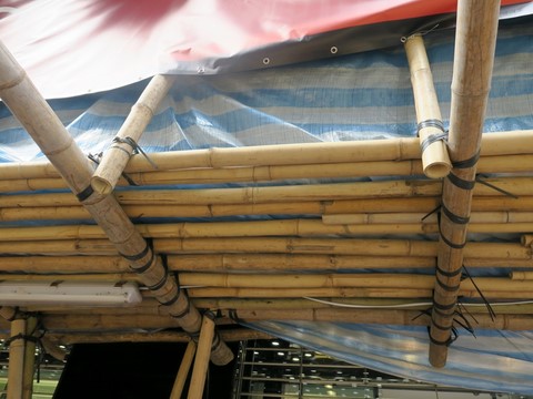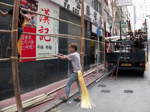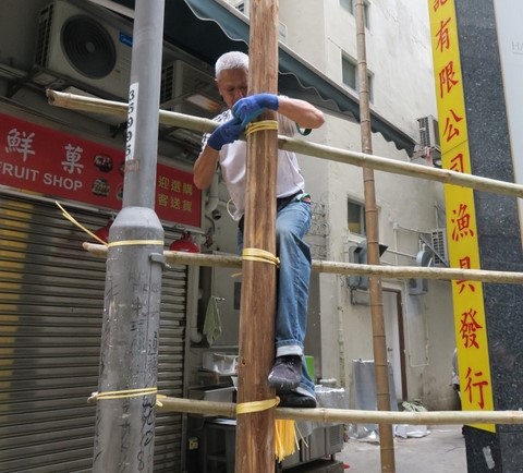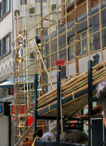 Ces fameux échafaudages en bambou sont toujours d'actualité .