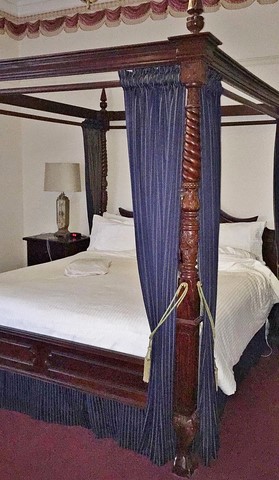 Nous avons dormi dans un lit à baldaquin .