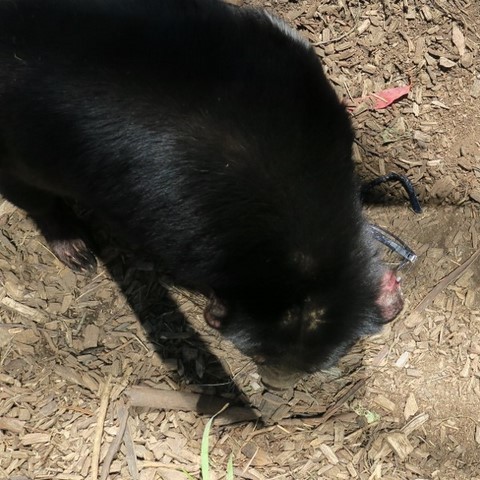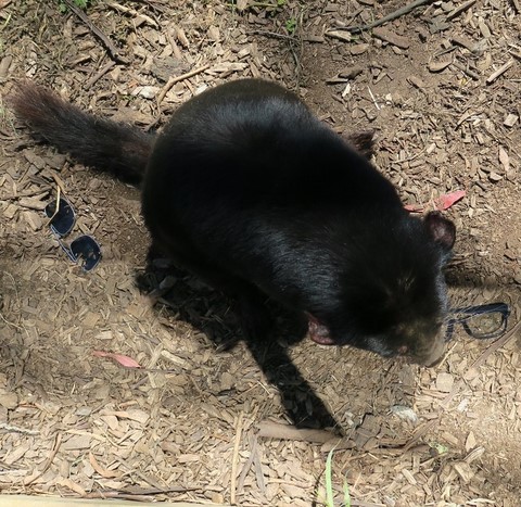 Par contre notre petit diable , venu nous voir car l'employé du zoo lui a donné des os , a fait quelque chose d'amusant