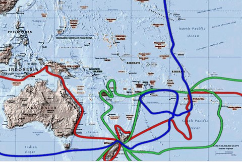 " Faisant ensuite route vers la Tasmanie, des vents violents détournèrent l'expédition plus au nord, l'amenant aux larges d'une terre récemment découverte et dénommée New Holland... James Cook découvre la future Australie !