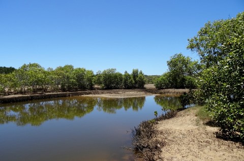 Voila ou m'a menée la photo de la connexion de la marina et la triste couleur de l'eau du port à cause du fleuve Burnett .