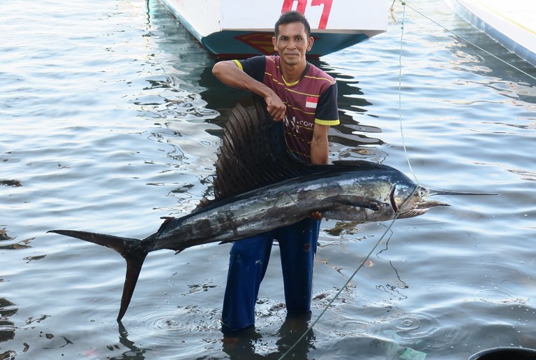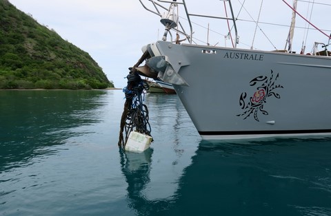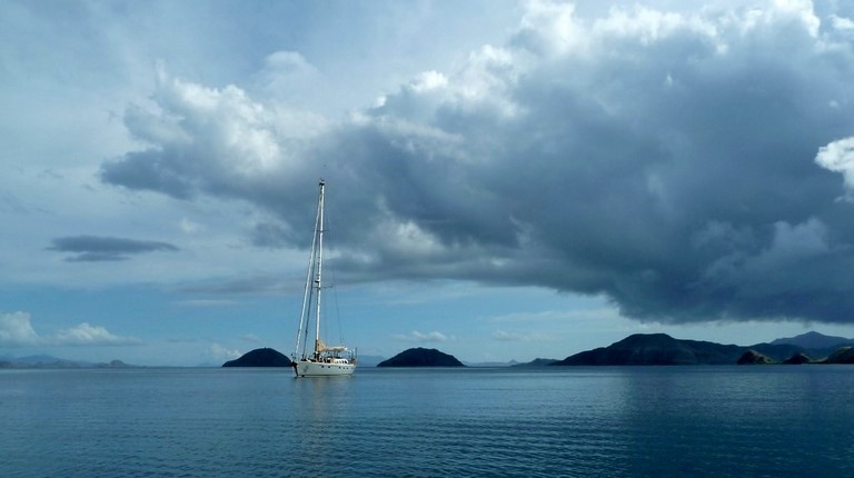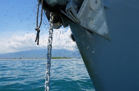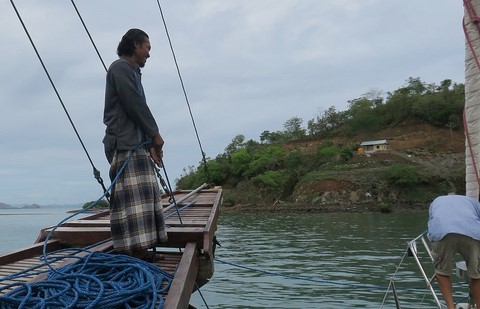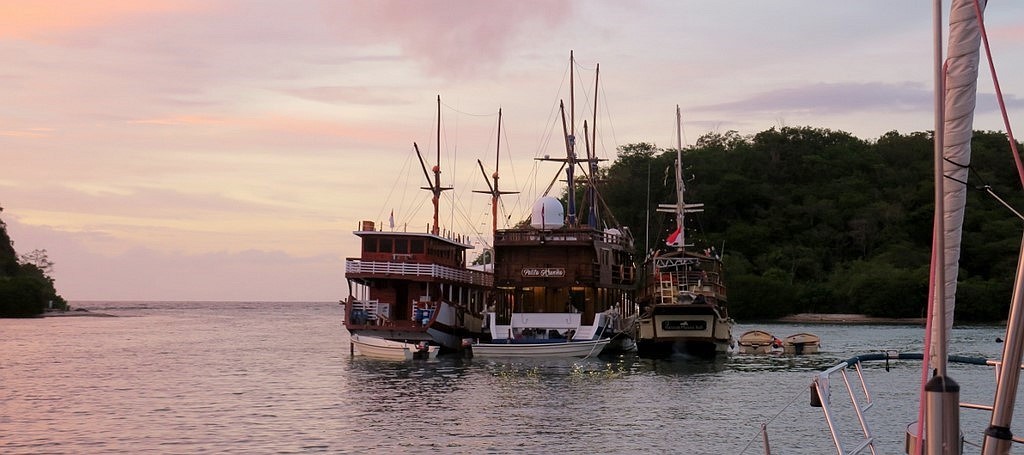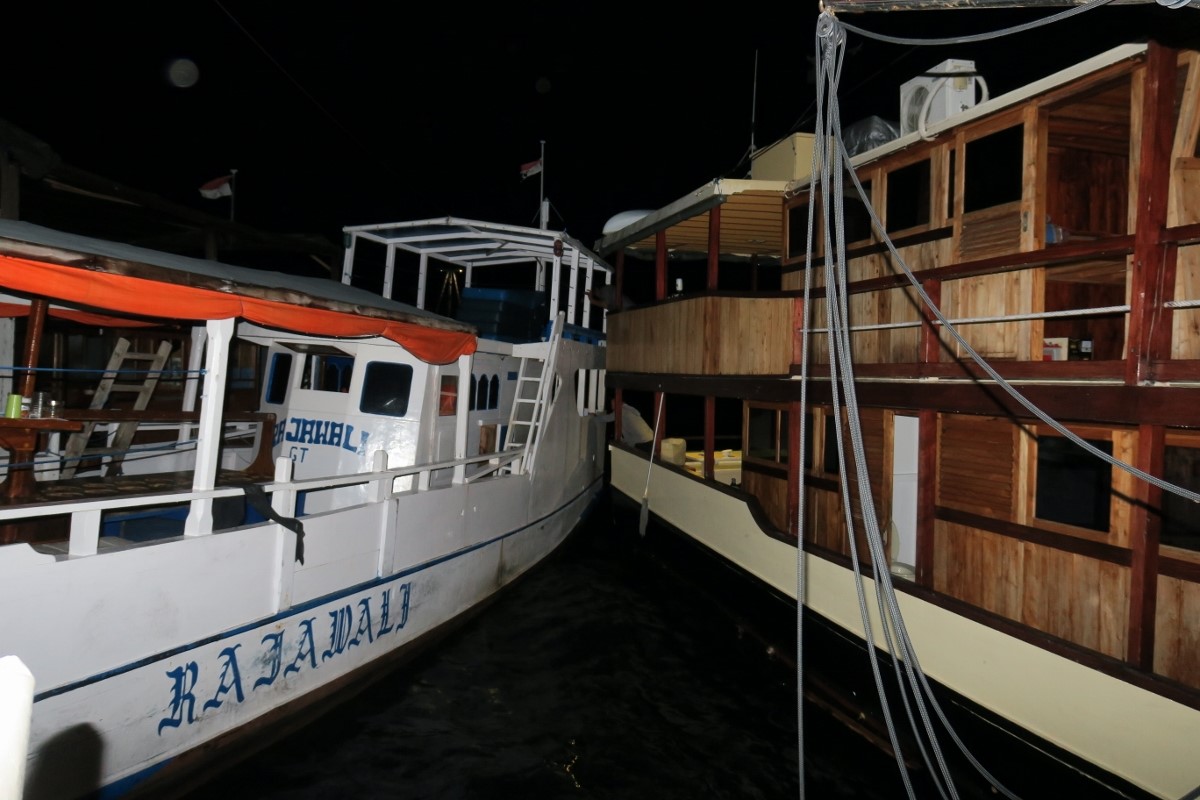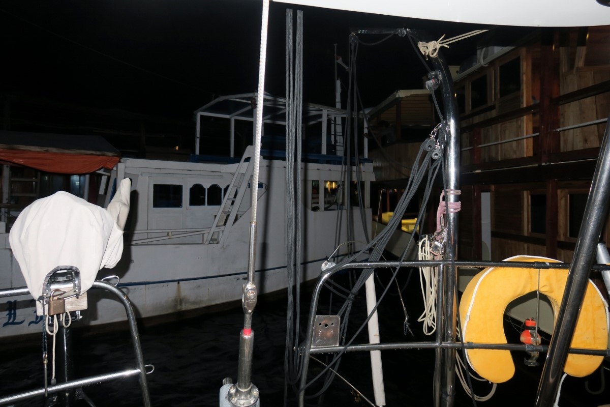 Un gros bateau indonésien s'était mis à couple de nous car nous avons pris son corps mort .