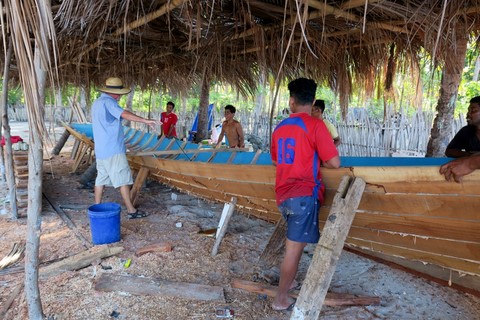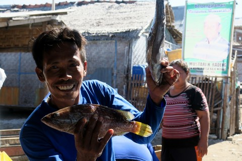 Nous partons tôt au village pour voir l'arrivée des pécheurs .