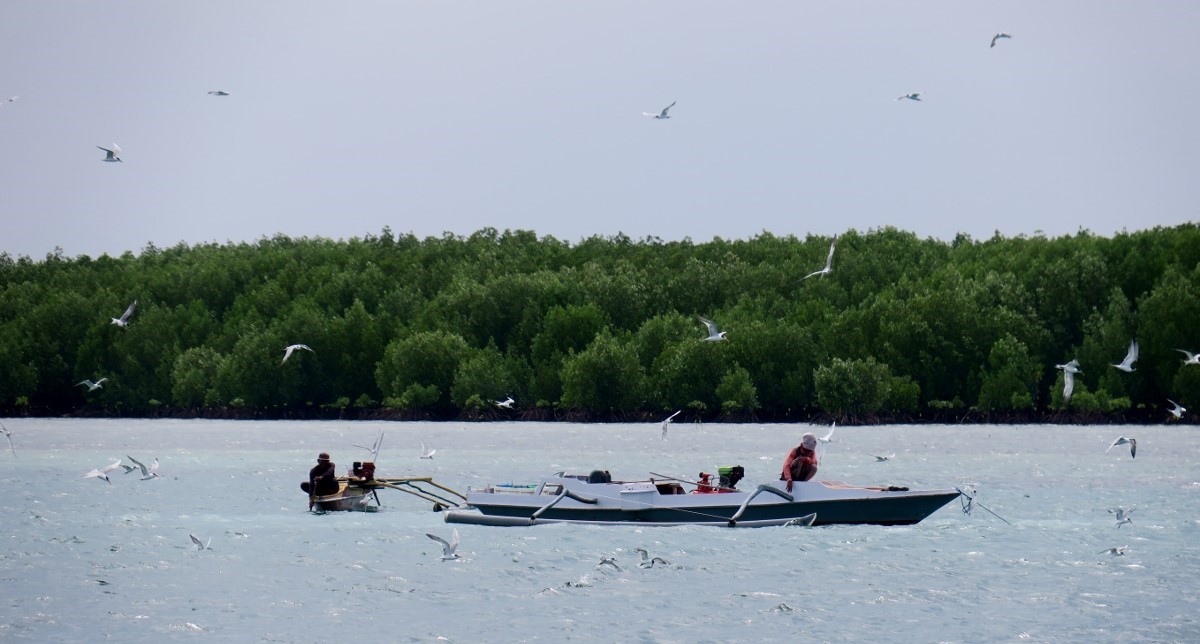 Là les sternes se jetent sur les poissons tués par l'explosion .