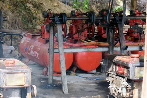 Il y a un peu partout dans le village des installations pour extraire de l'or de la terre .