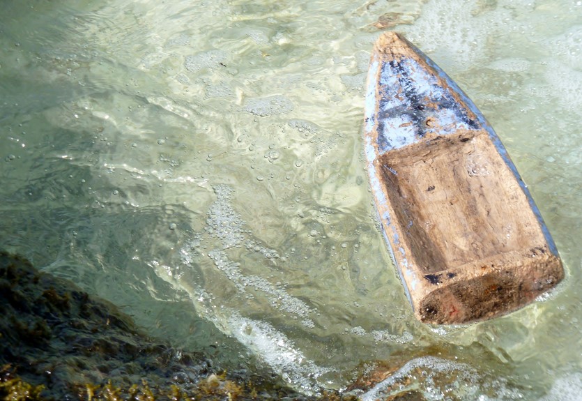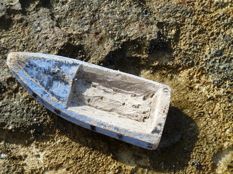 Pour ne pas montrer les déchets ... un mignon bateau en balsa fait main .