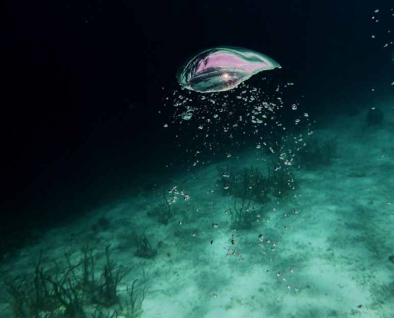 Au lieu d'aller plonger .... je regarde les " bubulles " faites par les autres .