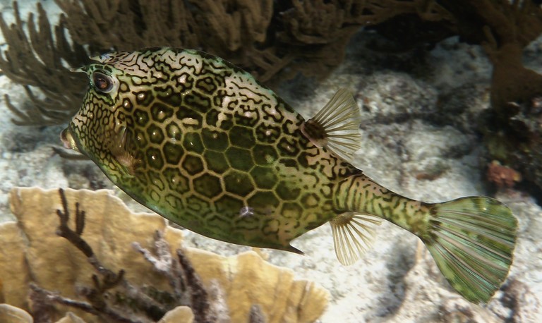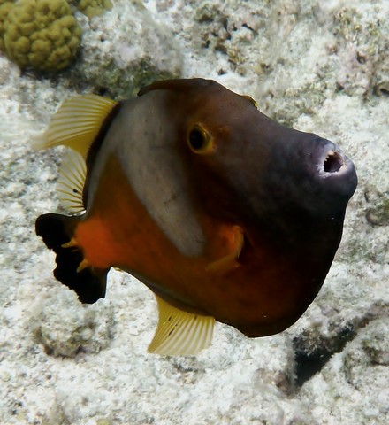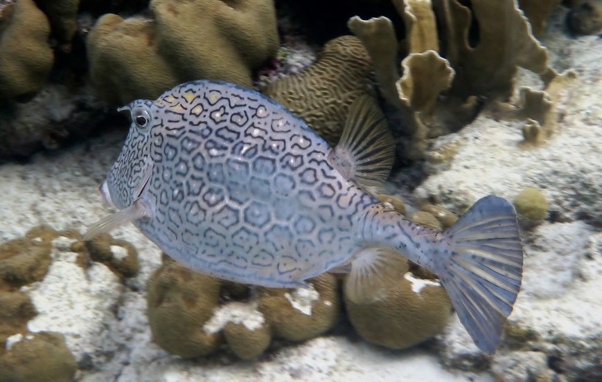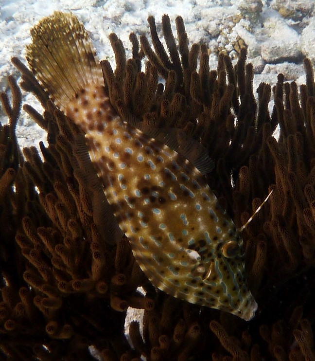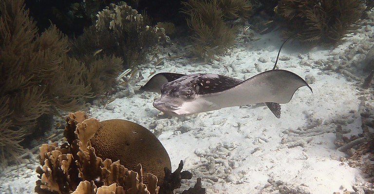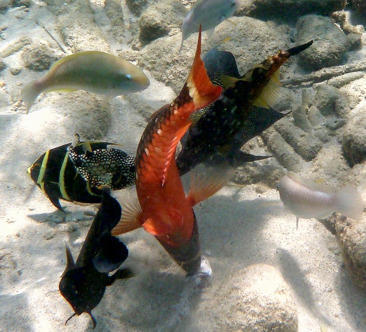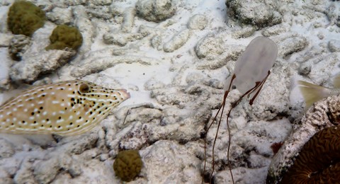 Elle passe tranquillement au dessus du corail de feu sans avoir peur de se raper le ventre , moi je rentre le ventre .