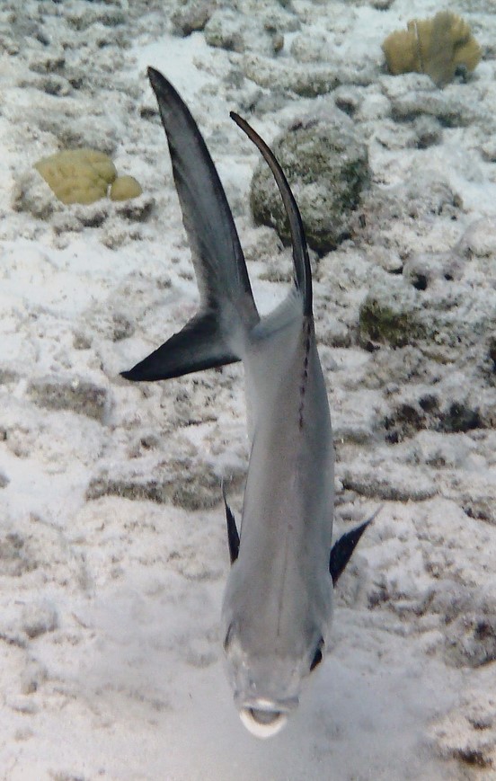 Ce sont des poissons très élégants , mais très casse-pieds à prendre en photo . Ils frétillent tout le temps donc c'est presque impossible d'avoir 1 photo nette . Ils sortent le soir en même temps que les requins !