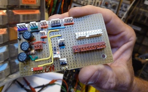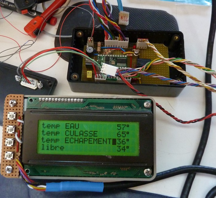 Le doudou travaillait donc sur la quille et sur sa liste de travaux en vue ( qui s'allonge constamment d'ailleurs ) , il y avait : " Circuit électronique de coupure du groupe en cas de température trop élevée , à créer et installer pour empêcher la surchauffe " .